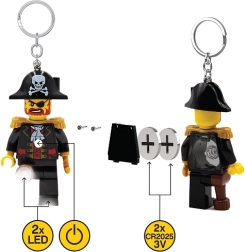 Detailná minifigúrka s trojrohým klobúkom, epoletmi a pirátskymi prvkami je verná LEGO štýlu a vynikne na kľúčoch aj batohu.