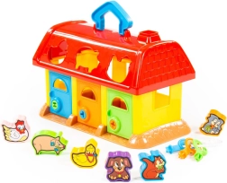Tento farebný plastový domček je skvelou voľbou pre prvé didaktické hry. Deti vkladajú zvieracie tvary do zodpovedajúcich otvorov na streche a pomocou kľúčikov otvárajú dvierka, aby si svoje poklady zase vybrali. Hračka prirodzene podporuje koordináciu oko–ruka, trpezlivosť a priestorovú predstavivosť.