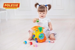 Tento roztomilý vláčik je ideálnou hračkou pre batoľatá. Spája obľúbené ťahacie vozítko so vzdelávacím vkladaním a jednoduchými hodinami, takže dieťa sa hrá a zároveň sa učí. Vďaka šiestim rôznym tvarom precvičuje jemnú motoriku a logické myslenie.