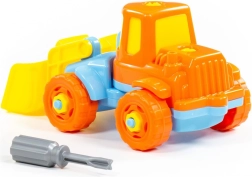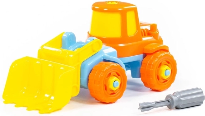 Súčasťou je jednoduchý detský skrutkovač – deti môžu bager rozoberať a znova skladať, čím trénujú jemnú motoriku a trpezlivosť.