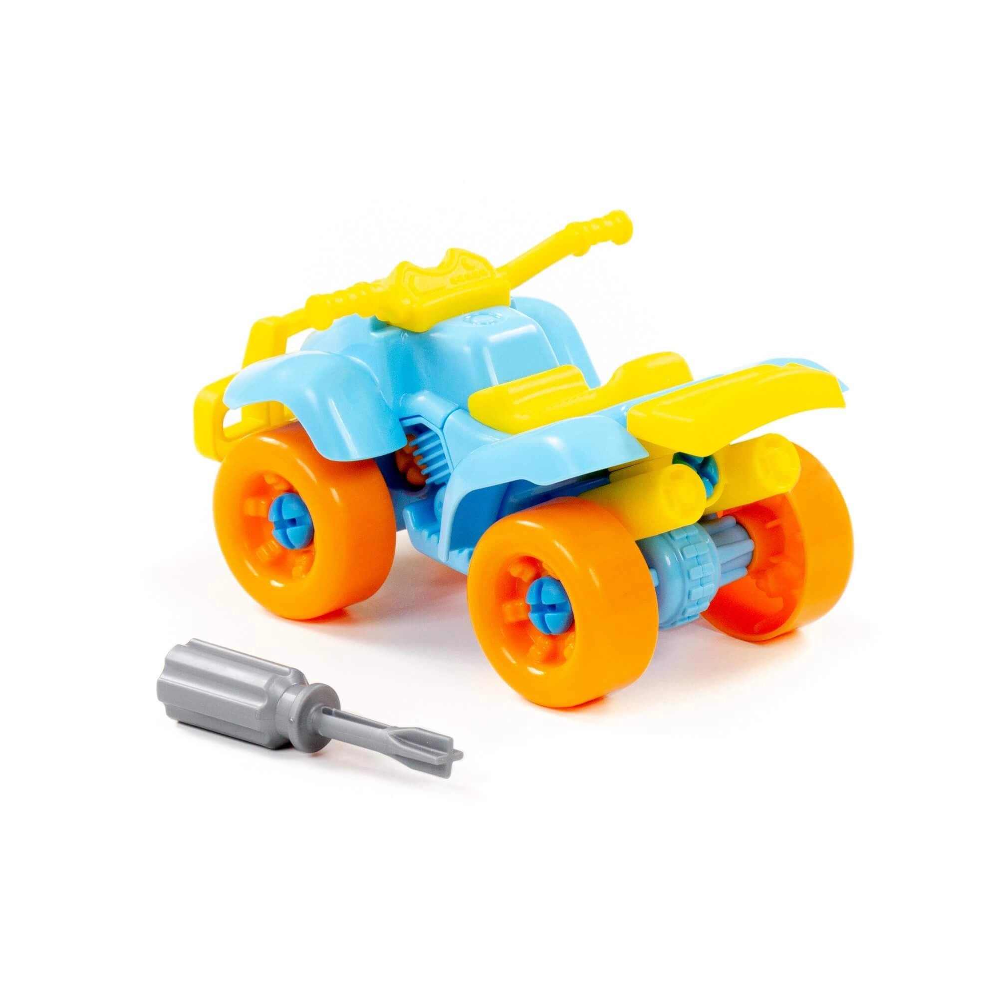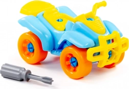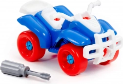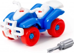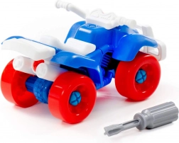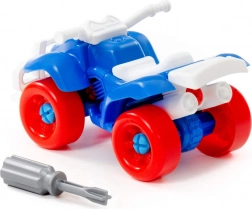 Súčasťou je detský skrutkovač. Deti si ľahko precvičia jemnú motoriku a logiku pri opakovanom skladaní štvorkolky.