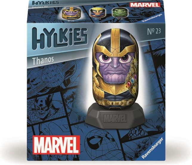 Postavte si ikonického záporáka Thanosa v podobe zberateľskej figúrky zo série Hylkies. Plastové dieliky do seba presne zapadajú a vytvárajú stabilný 3D model, ktorý si po zložení vystavíte alebo doplníte do svojej MARVEL kolekcie. Skladanie je intuitívne, rýchle a bez potreby lepidla.