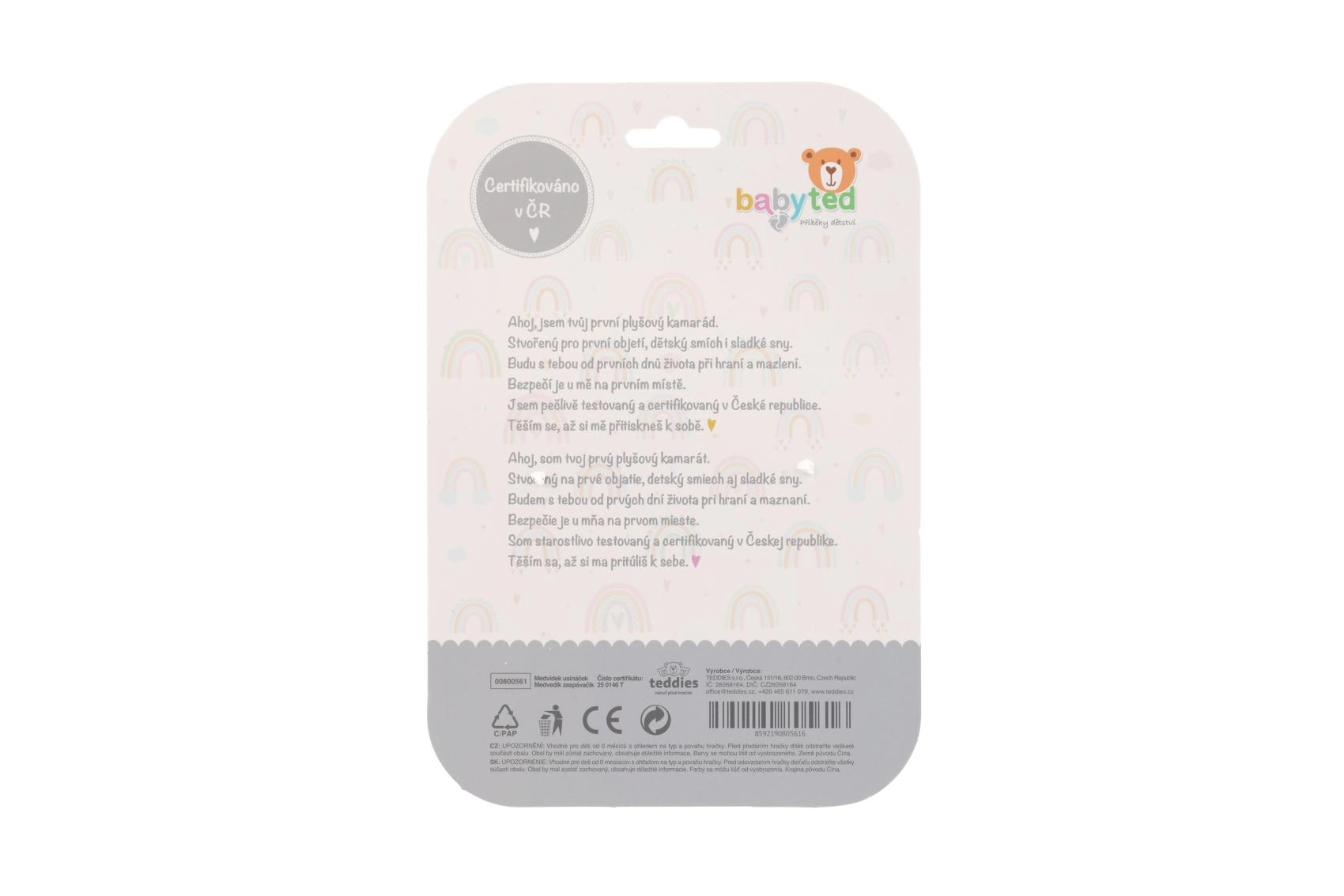 Tento plyšový mojkáčik BABYTED je navrhnutý pre bábätká už od narodenia. Ultra jemný minky materiál s plastickými bodkami je príjemný na dotyk a svojim upokojujúcim charakterom pomáha k lepšiemu spánku. Integrovaná hrkálka v hlavičke medvedíka jemne cinká a prirodzene upúta pozornosť dieťaťa.