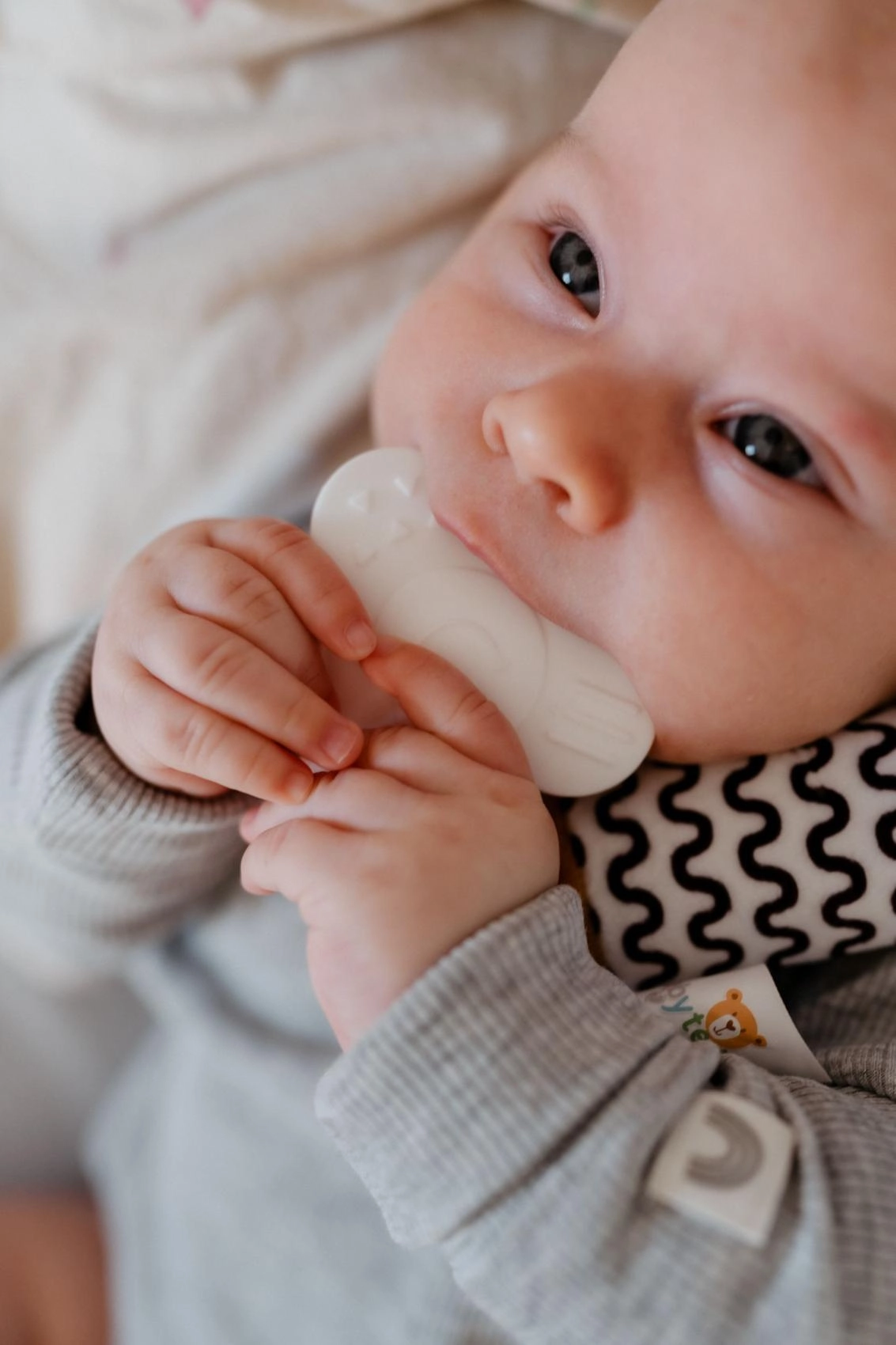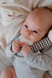 Mäkké hryzátko v tvare kvietku jemne masíruje citlivé ďasná a pomáha pri raste prvých zúbkov.