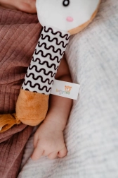 Dlhé a mäkké telíčko sa dobre uchopuje malými ručičkami a čiernobiely vzor podporuje vizuálne vnímanie bábätiek.