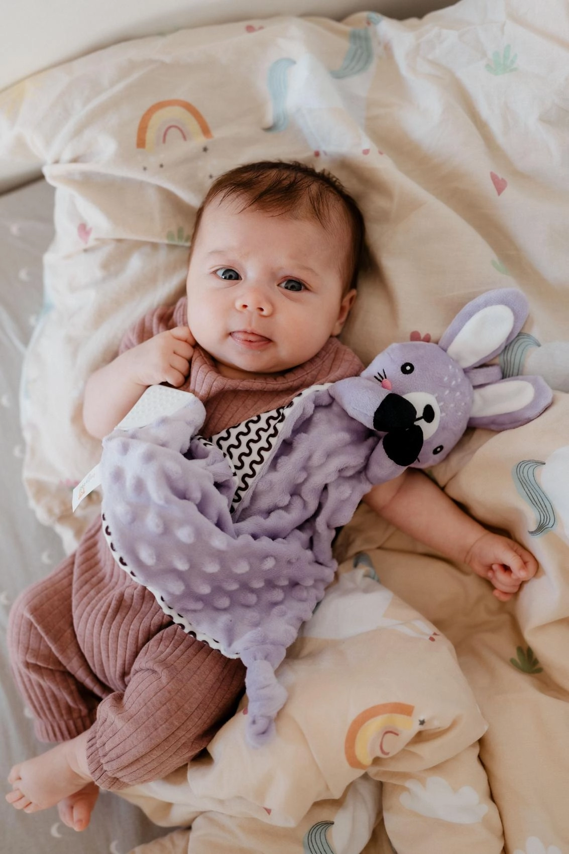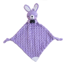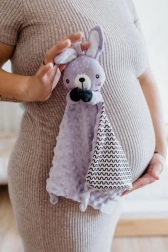 Tento hebký plyšový usínáčik zajačik je ideálnym prvým kamarátom pre bábätká. Materiál minky s vytlačovanými 3D bodkami poskytuje príjemnú taktilnú stimuláciu, upokojuje a pomáha navodiť pocit bezpečia pri spánku aj počas dňa. Vďaka ľahkej konštrukcii ho ľahko uchopia aj drobné detské rúčky.