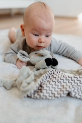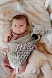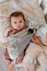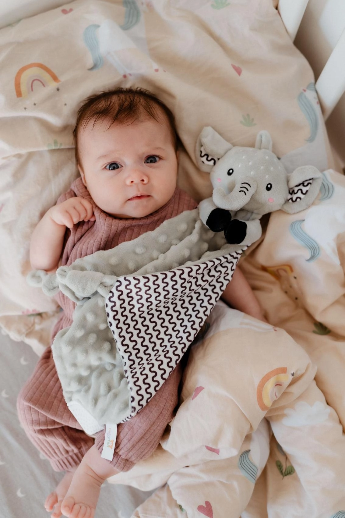 Ultra jemný materiál s plastickými bodkami poskytuje bábätku pohodlie, istotu a jemnú senzorickú stimuláciu pri mojkaní aj zaspávaní.