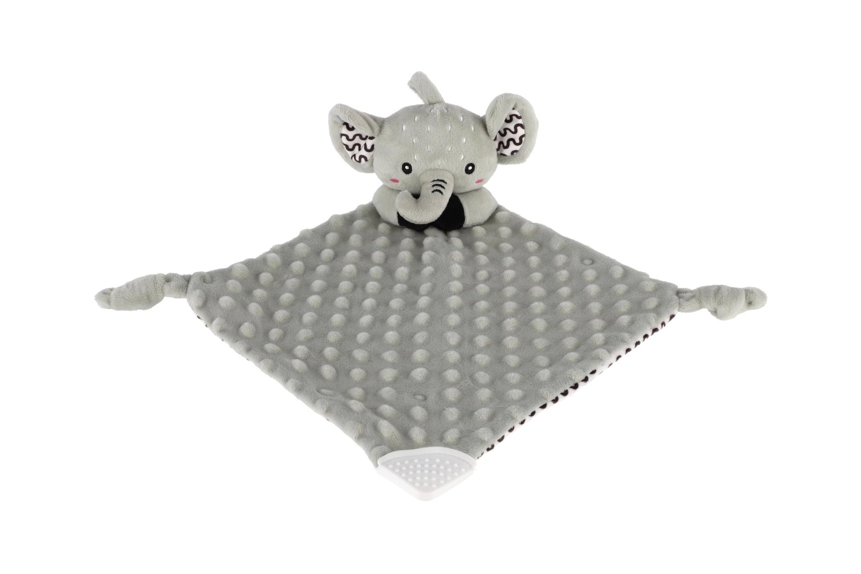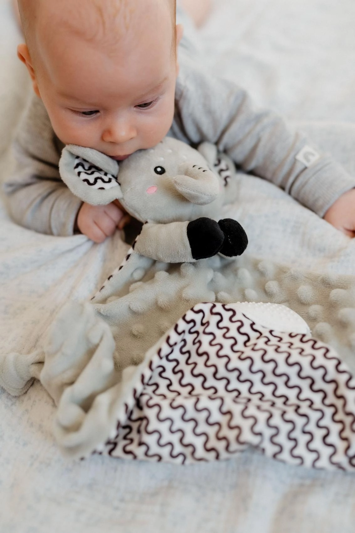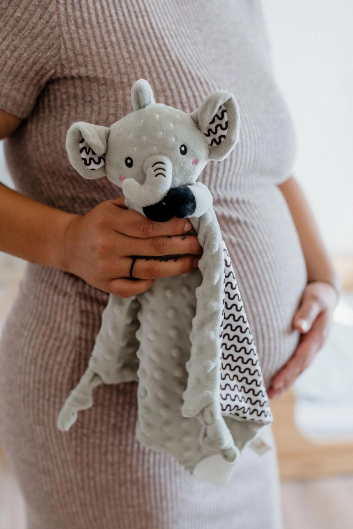 Hebučký uspávací maznáčik v tvare sloníka od BABYTED prináša bábätku pocit bezpečia a pokojný spánok. Mäkučký minky materiál s 3D bodkami láka k mojkaniu, skrytá jemná hrkálka rozvíja sluch a mäkké silikónové hryzátko uľaví pri prerezávaní zúbkov. Vhodné od narodenia, certifikované v SR.