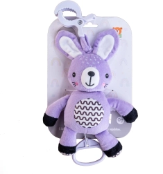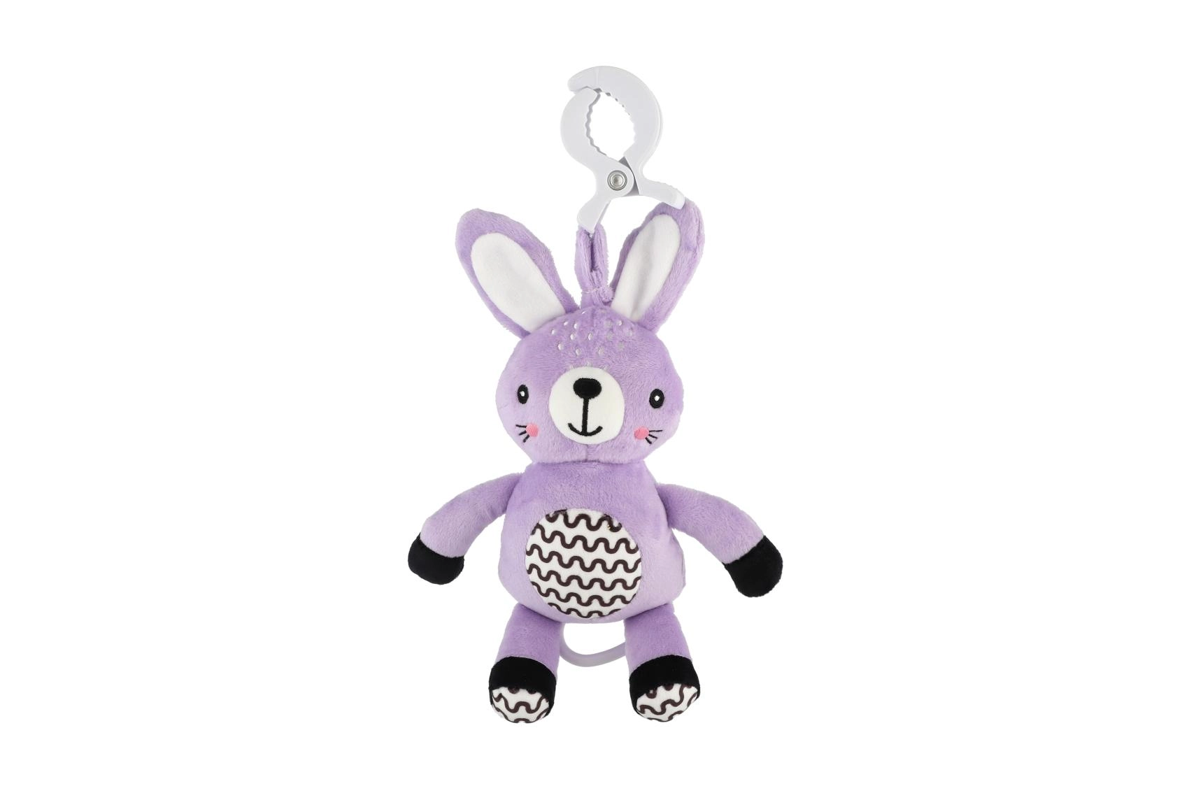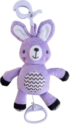 Tento závesný plyšový zajačik prináša bábätku útechu, jemnú stimuláciu a bezpečnú zábavu doma aj na cestách. Natahovací strojček po zatiahnutí prehrá príjemnú melódiu, ktorá pomáha vytvoriť pokojné prostredie na oddych. Vďaka univerzálnemu klipu hračku ľahko pripevníte na kočík, postieľku, autosedačku alebo hrazdičku.