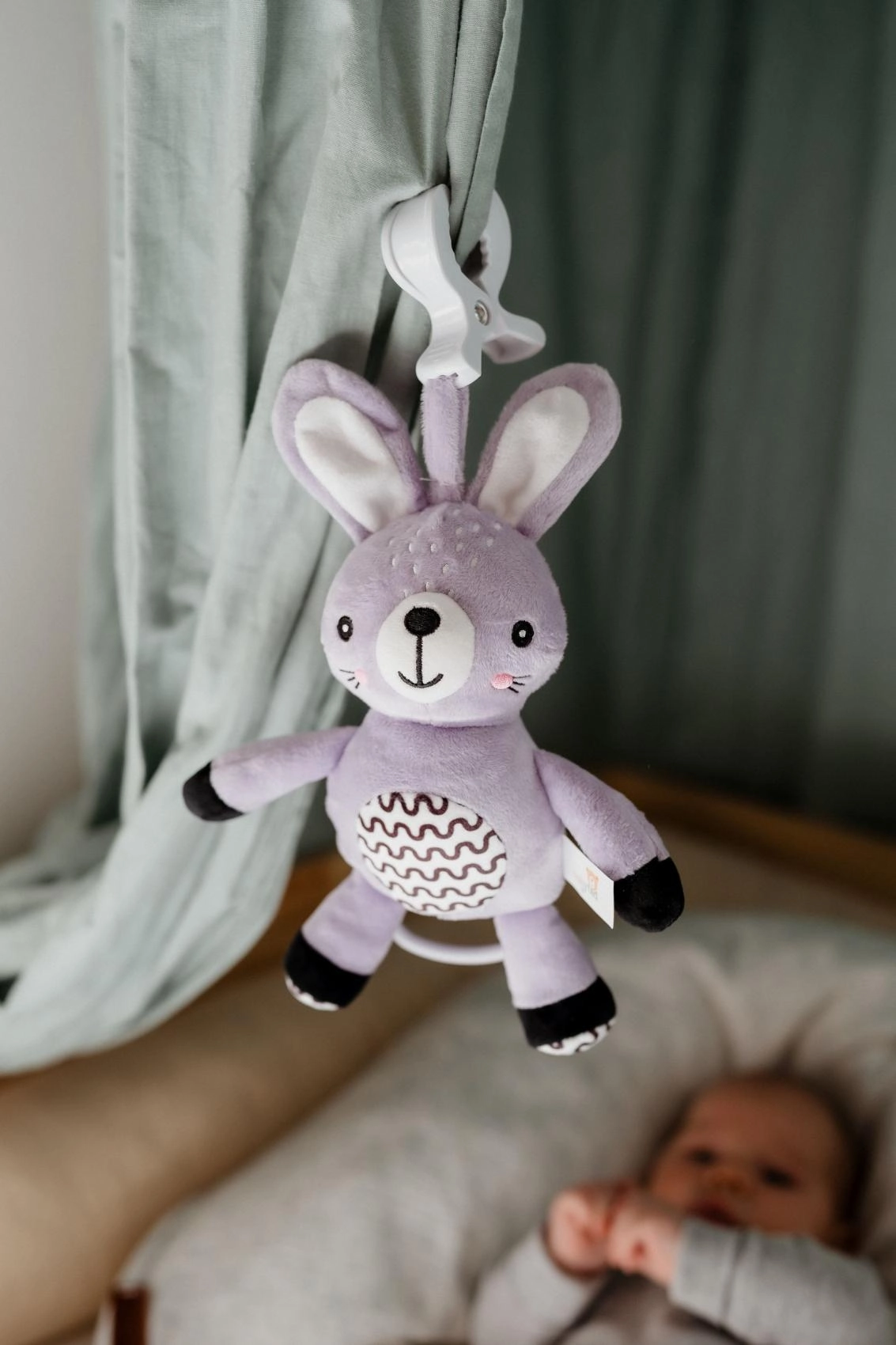 Praktický klip umožní rýchlo pripevniť zajačika na kočík, postieľku, autosedačku či hrazdičku – vždy po ruke doma aj na cestách.
