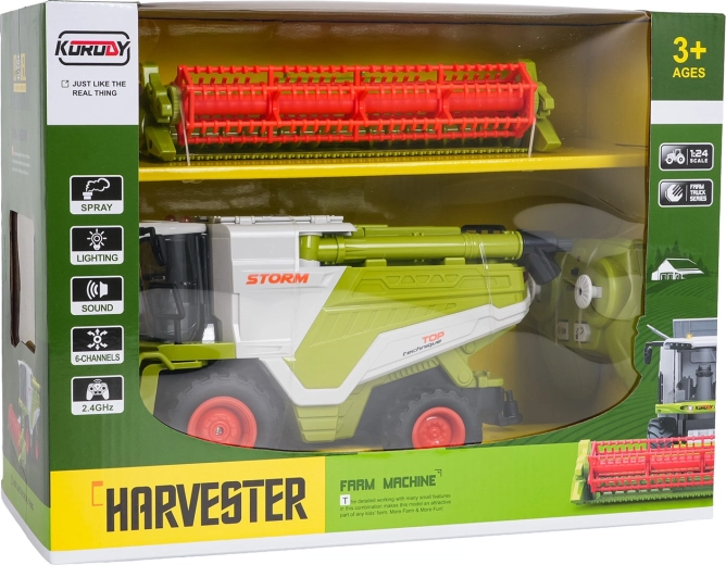 Realistický RC kombajn v mierke 1:24 nadchne malých farmárov od 3 rokov. Ponúka jazdu všetkými smermi, gumové kolesá s dobrou priľnavosťou, otočný žací valec, otvárateľný zásobník na zrno a LED osvetlenie. Vďaka dymovému efektu (vodná para) a realistickým zvukom pôsobí ako skutočný stroj. Ovládanie prebieha na 2,4 GHz, nechýba možnosť vypnutia svetiel a zvukov a automatické uspanie pre úsporu batérie.