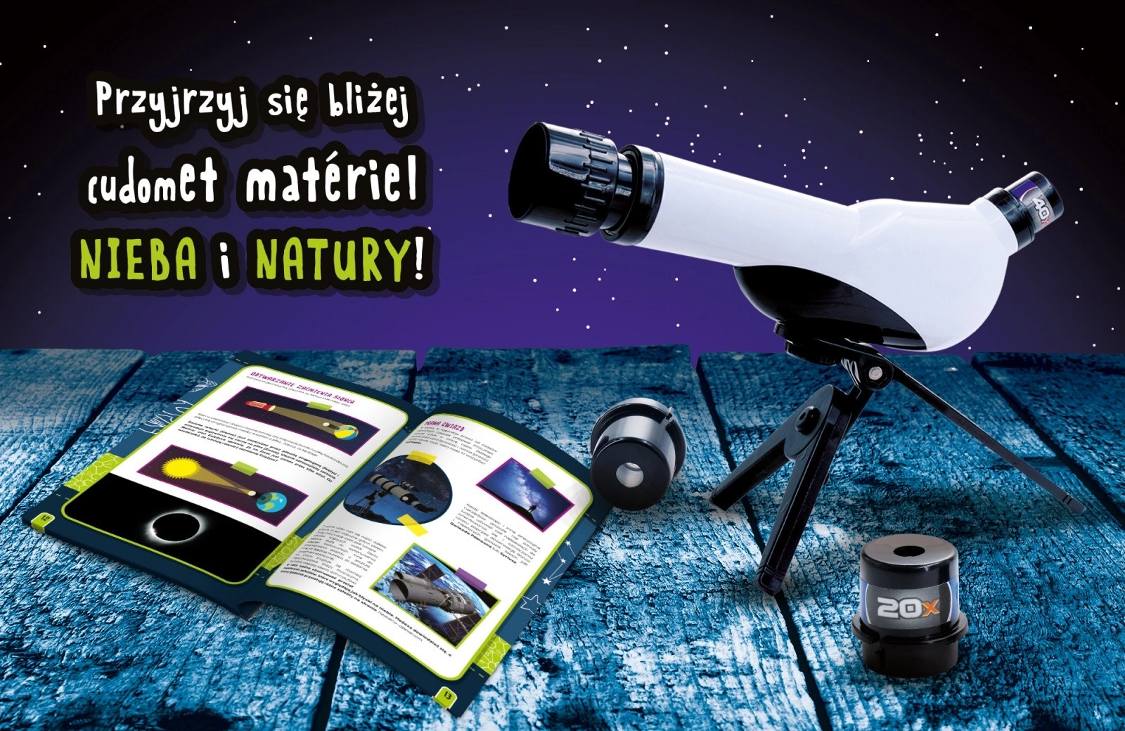 Tento vzdelávací teleskop motivuje deti k objavovaniu hviezd, Mesiaca aj denných javov na oblohe. Jednoduché ovládanie a vymeniteľné šošovky zabezpečujú jasný obraz a prispôsobenie rôznym typom pozorovania. Priložené inštrukcie pomôžu rozoznať súhvezdia a bezpečne zvládnuť prvé astronomické experimenty.