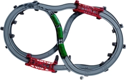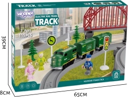 - lokomotíva, 2 vagóny, rovné a zakrivené koľaje, mosty, estakády, výhybky, figúrky, dopravné značky, stromy, budovy, návod