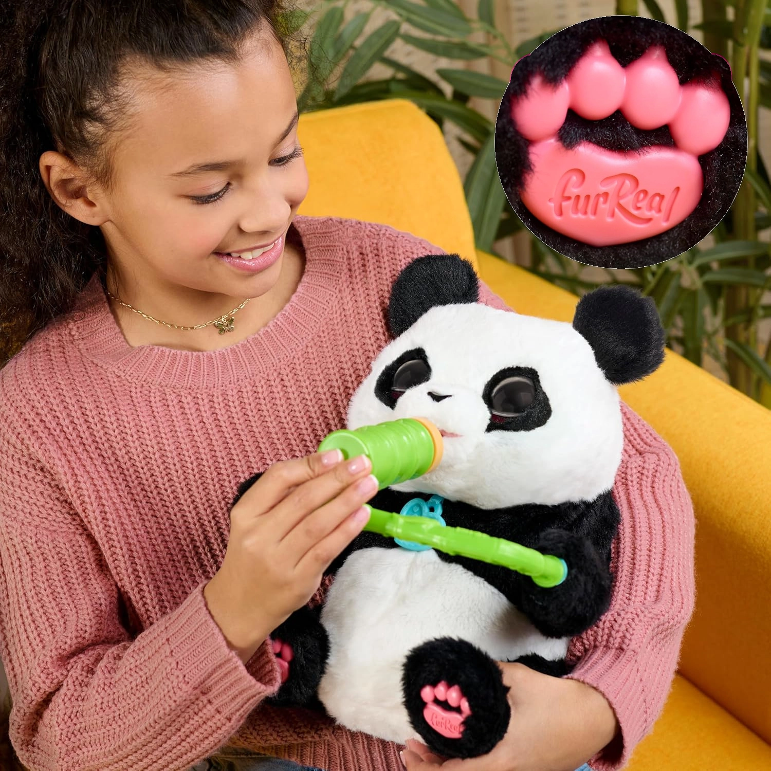 Objavte hravý svet s pandou Coco – nadýchaným plyšákom, ktorý sa rád smeje, kotúľa a robí premety. Jej mäkký čierno-biely kožuštek, trblietavé modré oči a roztomilé ružové vankúšiky na labkách zaručia, že si ju deti okamžite zamilujú. Vďaka viac než 60 zvukom a reakciám je každé hranie iné a plné prekvapení.