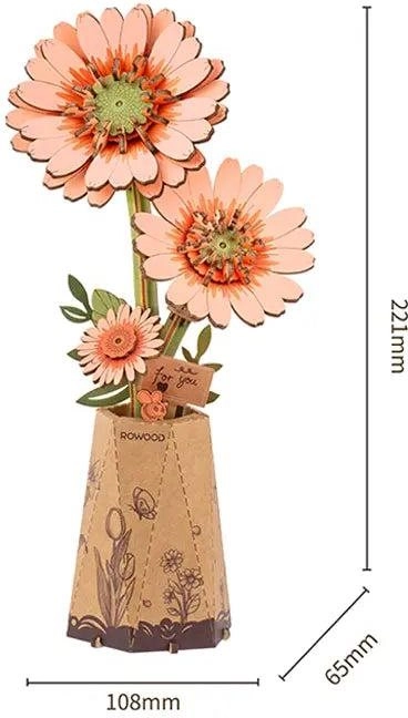 Zostavte si elegantnú oranžovú gerberu z precízne laserom vyrezaných drevených dielikov. Model podporuje jemnú motoriku, priestorové myslenie a trpezlivosť. Diely sú očíslované, bez nutnosti lepidla a po zacvaknutí pevne držia. Súčasťou je obrázkový návod; zložíte za približne 30 minút.