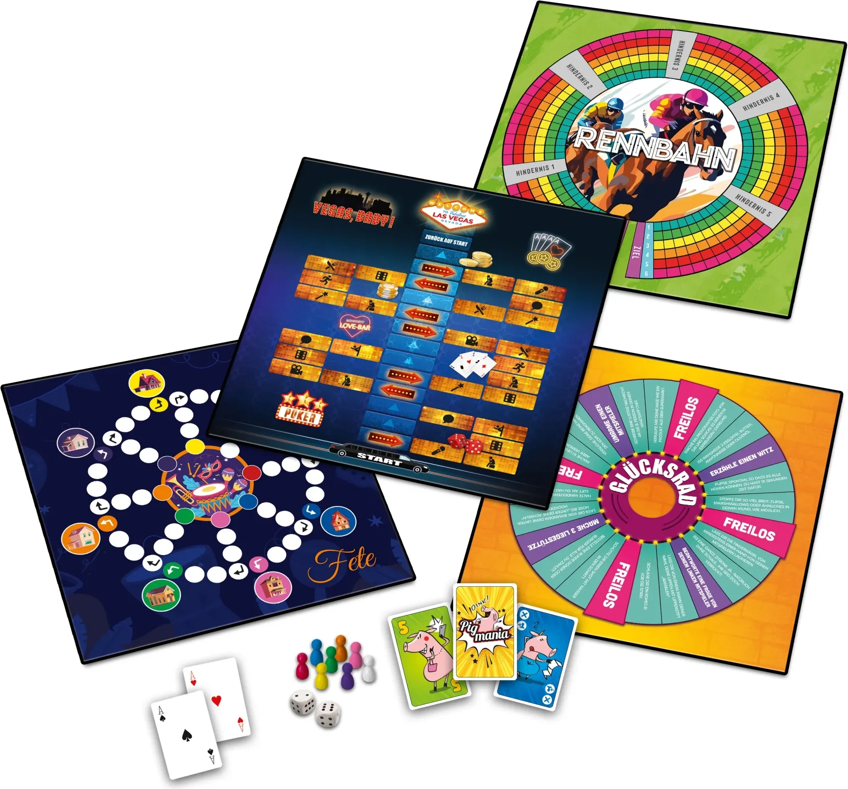 Partymania je univerzálny set, ktorý kombinuje pestrosť, jednoduché pravidlá a rýchlu prípravu. Vďaka dvom obojstranným herným doskám, desiatkam kariet a dreveným komponentom si vyberiete hru pre každú príležitosť – od rýchlych slovných výziev po tímové aktivity.