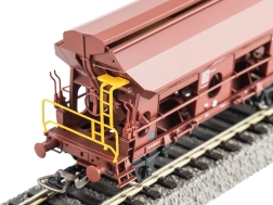 Moderný samovýsypný vozeň na prepravu potravinárskych surovín v mierke H0 verne zobrazuje vozne ČD z epochy VI. Ponúka detailné prevedenie s voľne stojacimi rebríkmi a zábradliami, vynikajúce jazdné vlastnosti a robustnú konštrukciu. Ideálne pre moderné koľajiská a náročných modelárov.
