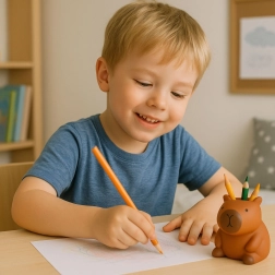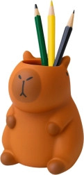 Tento dekoratívny organizér v tvare kapybary je vyrobený z kvalitného dekoratívneho materiálu s matným povrchom a hrejivým hnedým odtieňom. Vďaka zaobleným líniám pôsobí prívetivo a skvele zapadne do moderných aj útulných interiérov. Horný otvor/stĺpik umožňuje prehľadne uložiť písacie potreby, štetce či drobnosti.