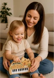 Vstúpte s deťmi do sveta hudby s pôvabným mini pianom s motívom kapybary. Vďaka 22 klávesom si malí hudobníci ľahko osvoja jednoduché melódie a rytmus. Pastelové ilustrácie a priateľský dizajn prirodzene lákajú k hre a rozvíjajú vzťah k hudbe už od útleho veku.