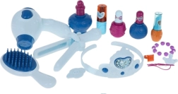 - toaletka, stolička, fén, kefa, žehlička na vlasy, 2 laky na nechty, 2 rúže, náramok, 2 prstienky, koruna, „parfum“, 2 sponky do vlasov, dekoratívne samolepky