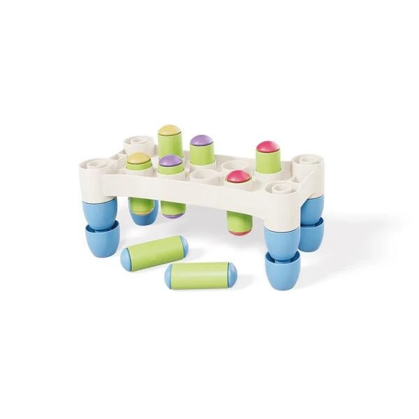 Bezpečné, hladké tvary a pestré farby podporujú vizuálne vnímanie a motivujú k opakovanej hre. Sada je navrhnutá tak, aby všetky diely spolu perfektne fungovali a boli ľahko uchopiteľné aj pre malé ruky.