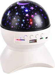 Tento elegantný biely projektor hviezd premení detskú izbu, spálňu aj obývačku na relaxačnú zónu. Vďaka LED projekcii hviezd a mesiaca vytvára upokojujúce prostredie na zaspávanie, čítanie alebo večernú pohodu. Integrovaný Bluetooth reproduktor umožní prehrávať obľúbené uspávanky, ambientnú hudbu či audio rozprávky priamo z telefónu, USB disku alebo karty microSD.