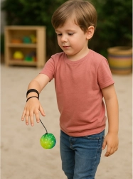 Nastaviteľný pružný zápästný pásik sa prispôsobí väčšine rúk a zabezpečuje pohodlné a bezpečné nosenie. Výrobok je skvelý pre deti, mládež aj dospelých – ako doplnok tréningu, školské aj domáce cvičenie, alebo zábavnú aktivitu na záhrade a ihrisku. Farba loptičky je vždy pestrá a vyberá sa náhodne.