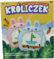 Zábavná magnetická mozaika v tvare zajačika rozvíja detskú fantáziu aj šikovnosť. Pomocou magnetického pera deti ľahko premiestňujú farebné gombíky a skladajú obrázky podľa predlôh alebo vlastnej fantázie. Súčasťou sú farebné magnetické gombíky, magnetické pero v držiaku a karty s predlohami. Skvelá pomôcka pre jemnú motoriku, kreativitu a sústredenie.