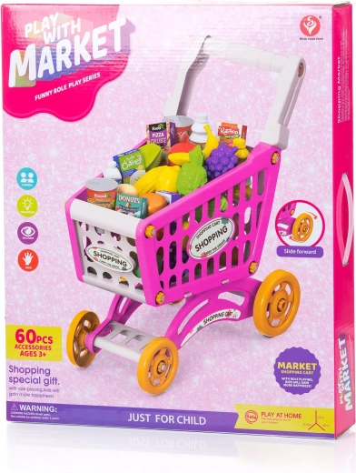 Ľahký plastový vozík s pohodlným madlom a otočnými kolieskami je ideálny pre malé ruky. Otvorený košík ľahko pojme všetky detské nákupy.