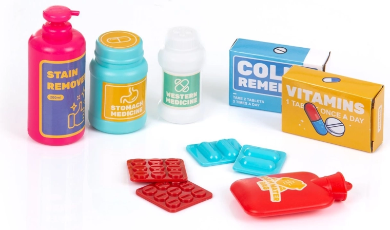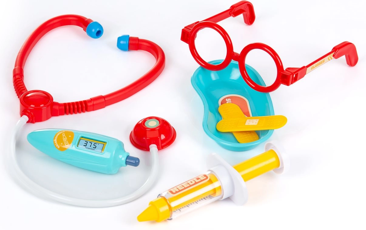 Stetoskop, teplomer, injekcia, nožnice a ďalšie doplnky inšpirujú deti k nápaditej hre a učeniu sa základným úkonom z lekárskeho prostredia.
