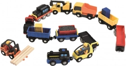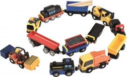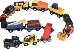 Táto univerzálna súprava rozšíri každú detskú vláčikodráhu o lokomotívu, vagóny a pracovné stroje. Diely sa ľahko prepájajú pomocou magnetických spojok a plynulo jazdia po rovnom povrchu aj kompatibilných koľajniciach. Realistické prvky ako nakládka klátov, uhlia či prevoz áut inšpirujú k nápaditej príbehovej hre.