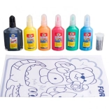 Farby sú sýte (červená, oranžová, žltá, zelená, modrá a čierna), ľahko sa aplikujú a podporujú jemnú motoriku, kreativitu a fantáziu. Tvoriť môžete s predlohami aj úplne bez predlohy.