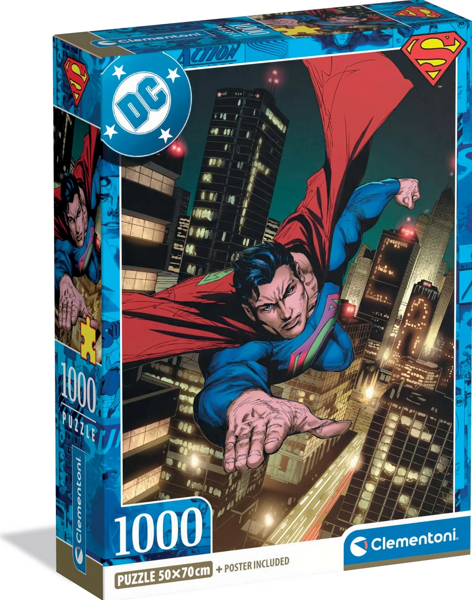 Vstúpte do sveta komiksov s puzzle Clementoni Superman: Ochranca. Vďaka vysoko kvalitnej tlači, sýtym farbám a presným výrezom je skladanie plynulé a príjemné. Formát 50 × 70 cm sa skvele hodí na zarámovanie a vystavenie.