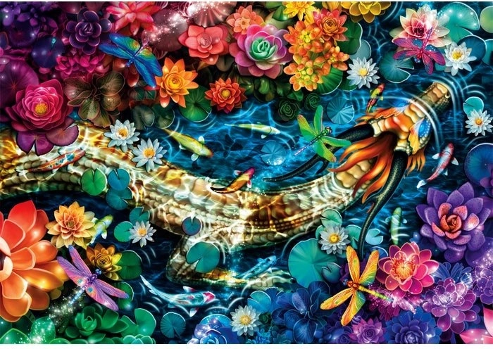 Elegantné puzzle s motívom jazierka koi poteší každého milovníka pokoja a prírody. 1000 dielikov ponúka príjemnú výzvu, precízny výsek a kvalitnú tlač so živými farbami. Po zložení vznikne obraz s rozmermi cca 70 × 50 cm, ideálny na zarámovanie.