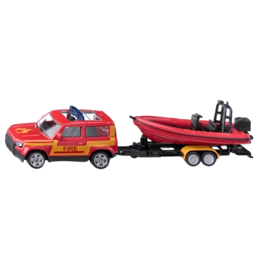Dôraz na detaily zabezpečuje vernosť skutočnému vozidlu: priehľadné strešné okno, realistické predné a zadné svetlá aj rezervné koleso na zadnej časti. Príves s kovovým rámom nesie plastový motorový čln, ktorý dotvára autentický vzhľad a rozširuje možnosti hry na záchranné operácie.