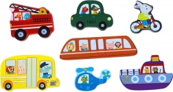 Objavte šikovné drevené puzzle s dopravnými prostriedkami, ktoré podporuje raný rozvoj detí formou hry. Dieliky príjemne padnú do ruky a pomáhajú trénovať koordináciu oko–ruka, rozlišovanie tvarov a sústredenie. Každý dielik môžete používať aj samostatne ako figúrku na voľnú hru.