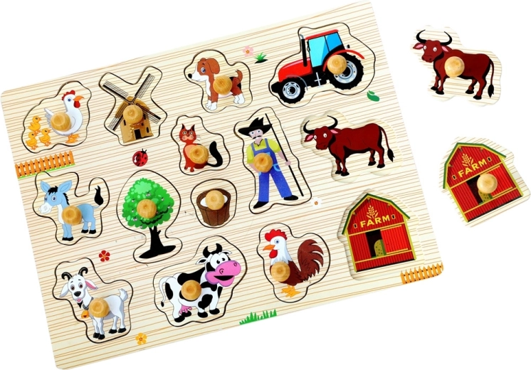 Táto skladačka rozvíja detské zručnosti a zároveň učí spoznávať život na vidieku. Je ideálna na prvú manipuláciu s puzzle a spoločné hranie s rodičmi.