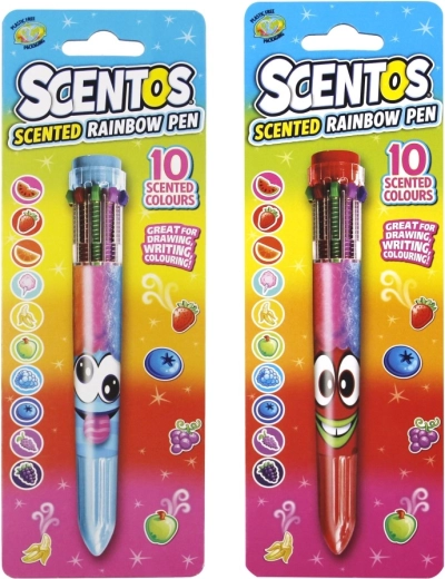 Voňavé dúhové pero SCENTOS je zábavná a praktická písacia potreba do školy aj na doma. V jednom tele ponúka hneď 10 žiarivých farieb, ktoré jednoducho zvolíte pomocou tlačidiel. Každá farba má svoju typickú ovocnú vôňu (napr. jahoda, banán, jablko), ktorá dáva písaniu aj kresleniu nový zmyslový rozmer.