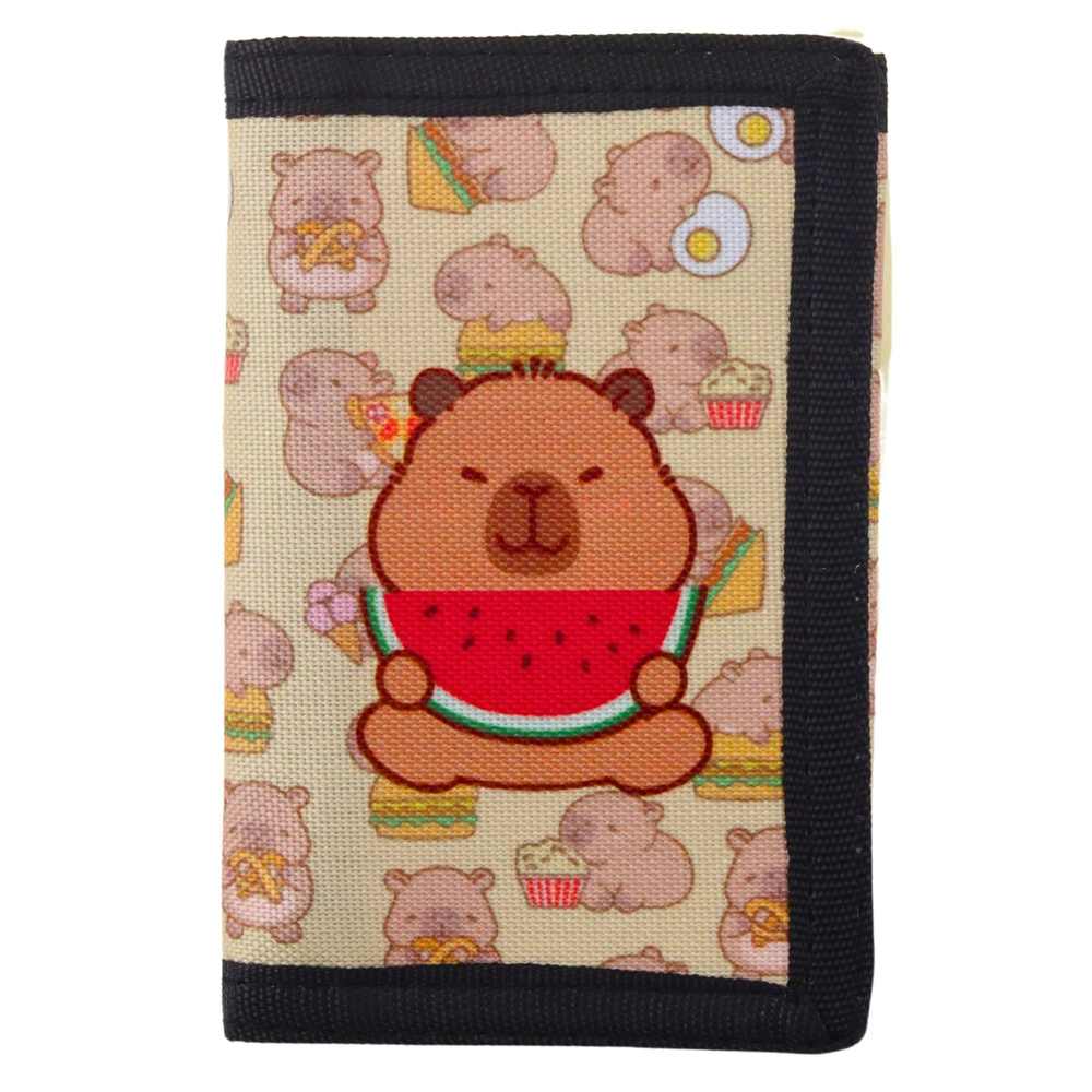 Hľadáte detskú peňaženku, ktorá spojí roztomilý dizajn a praktické usporiadanie? Tento skladací model s kapybarou a melónom je vyrobený z ľahkej textílie s odolným obšitím, takže skvele zvládne školský deň aj víkendové výlety.