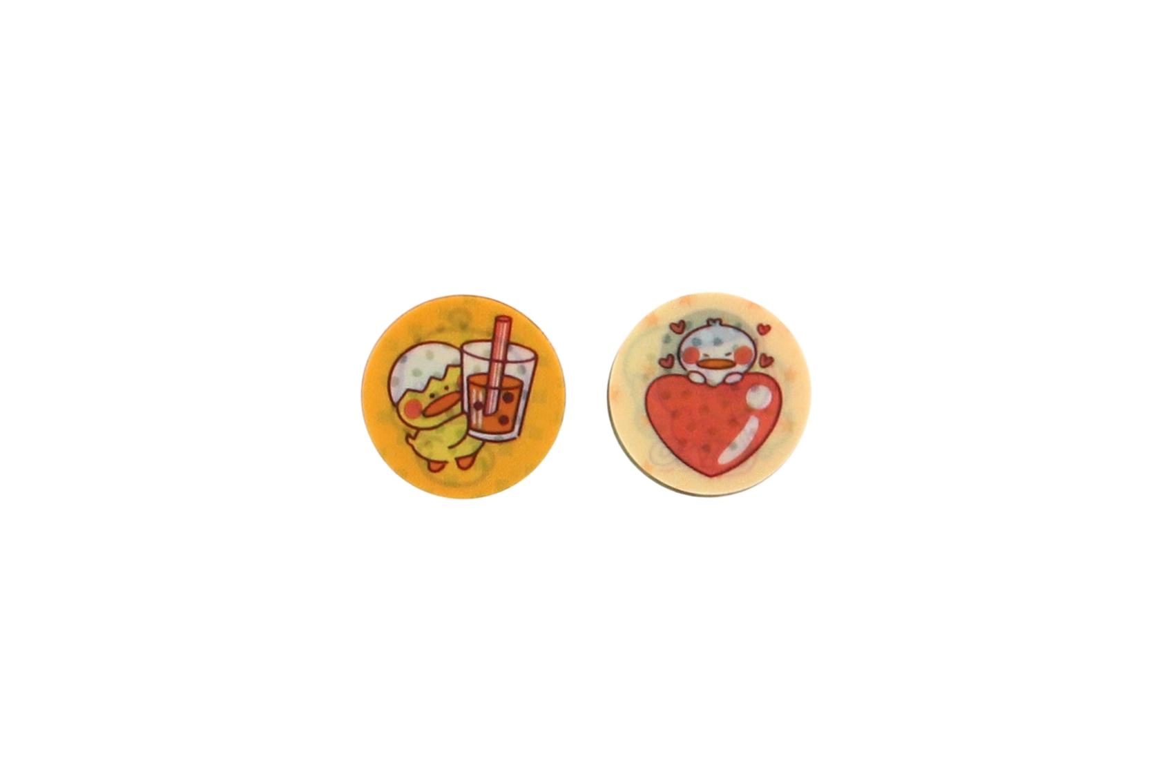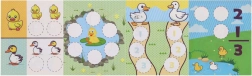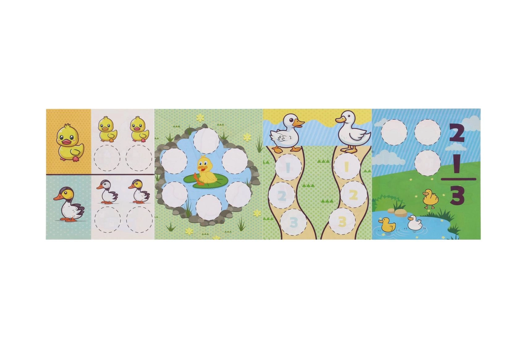 Súčasťou sú samolepiace kolieska s motívmi kačičiek a tematický hárok na lepenie a zdobenie projektov.