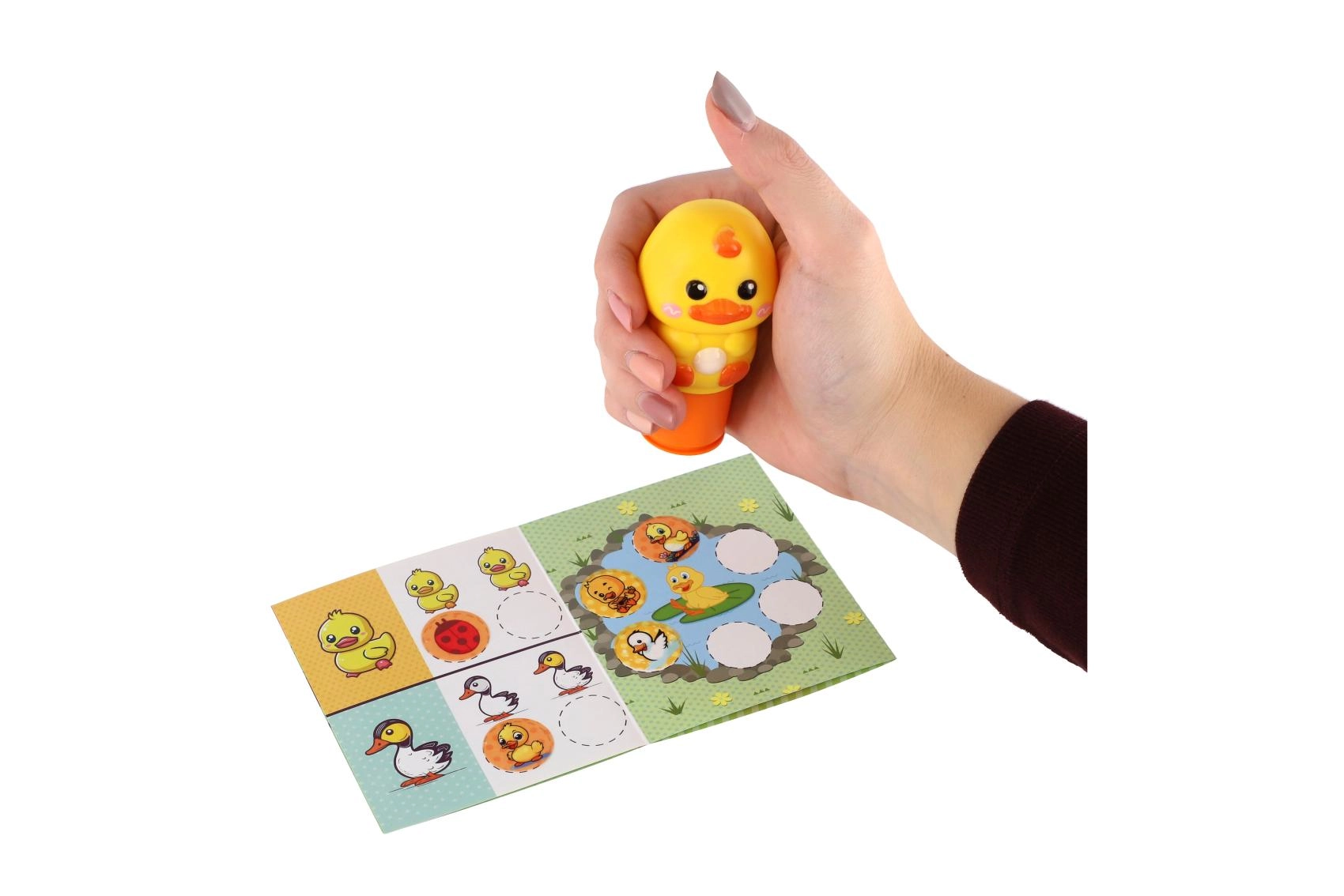 Objavte zábavnú pečiatku v tvare žltej kačičky, ktorá premení každé tvorenie na radosť. Vďaka pohodlnému držaniu a čistému odtlačku je pečiatka skvelá pre malé detské ruky. Balenie navyše obsahuje samolepiace kolieska s rôznymi motívmi kačičiek a tematický hárok, na ktorý si deti môžu samolepky lepiť.