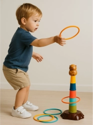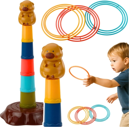 Táto detská hádzacia hra s krúžkami prináša veselý motív kapybary a jednoduché zostavenie päťposchodovej veže. Úlohou je hádzať krúžky tak, aby dopadli na vežu – deti si tak prirodzene trénujú presnosť, sústredenie aj koordináciu oko–ruka. Ľahké a bezpečné plastové diely sa príjemne držia a sú vhodné aj pre mladšie deti.