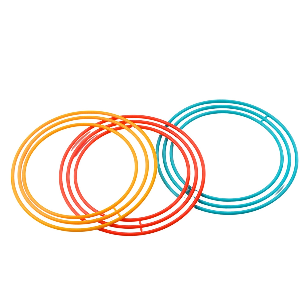 Sada obsahuje 9 krúžkov (3 veľké, 3 stredné, 3 malé) pre nastaviteľné úrovne obtiažnosti a zábavné súťaženie.