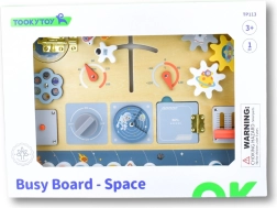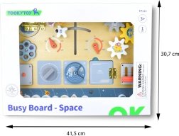 Vydajte sa na vesmírnu misiu s interaktívnou drevenou tabuľou Tooky Toy, ktorá spája Montessori princípy s kreatívnou hrou. Farebné motívy planét, rakiet a astronautov a množstvo manipulačných prvkov rozvíjajú jemnú motoriku, logiku aj predstavivosť detí od 3 rokov.