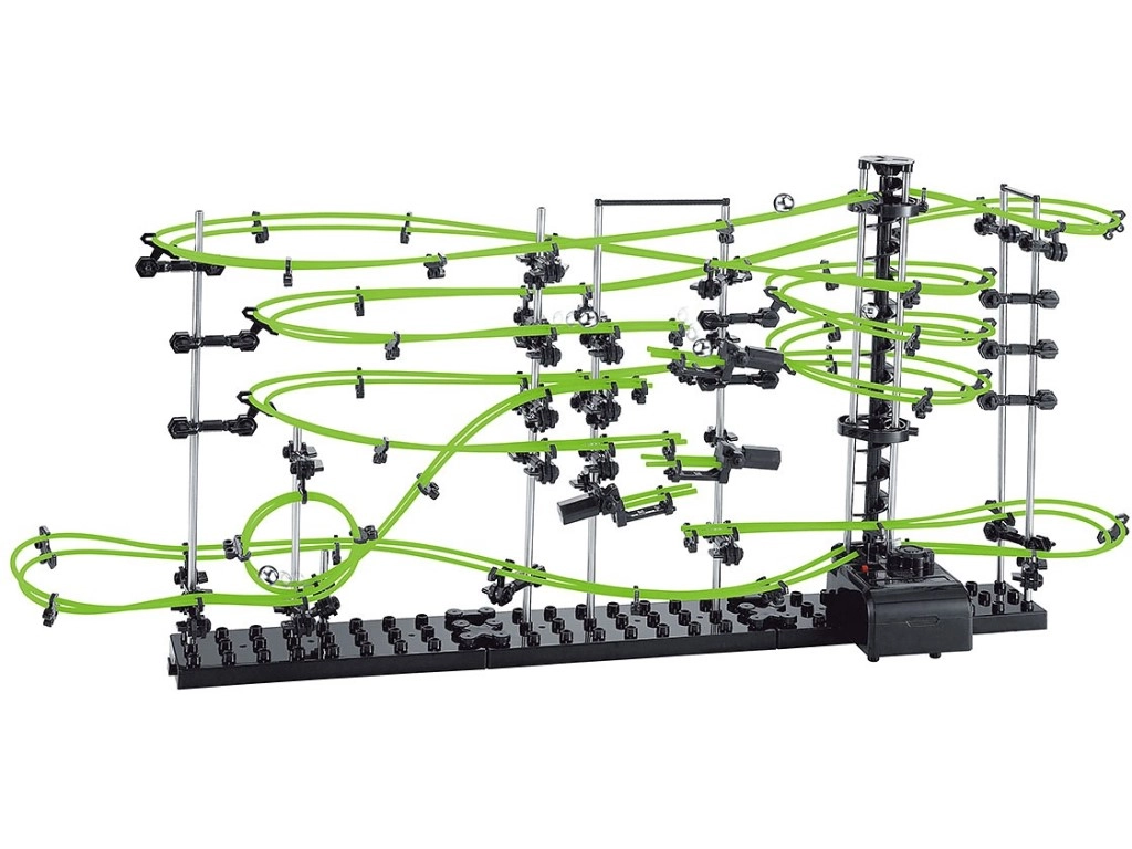 Táto svietiaca guľôčkodráha ponúka bohatú stavebnicu s 299 dielmi, vďaka ktorým ľahko vytvoríte jedinečné trate podľa návodu alebo vlastnej fantázie. Kombináciou výškových úsekov, zákrut a strmých zjazdov otestujete limity fyzikálnych zákonov a užijete si pútavú podívanú, ktorá žiari v tme.