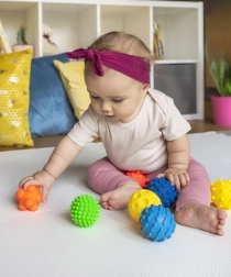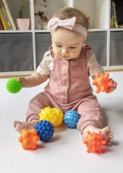 Každá loptička ponúka iný povrch – bodlinky, hrbolčeky a drážky pre intenzívnu taktilnú stimuláciu a radosť z objavovania.