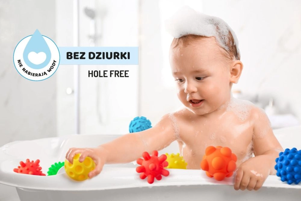 Konštrukcia bez otvorov bráni zadržiavaniu vody a nečistôt – loptičky ľahko umyjete a sú ideálne aj do kúpeľa.