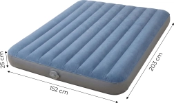 Súčasťou je vstavaná nabíjateľná pumpa s lítiovou batériou pre pohodlné nafúknutie a vyfúknutie bez ďalšieho príslušenstva – ideálne na cesty aj do domácnosti. Príjemný velúrový povrch je protišmykový a komfortný na dotyk, zatiaľ čo rozmery 203 × 152 × 25 cm poskytujú dostatok priestoru pre dve dospelé osoby.