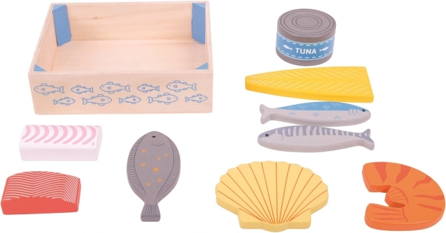 Táto drevená prepravka je plná čerstvých a zdravých rýb, ako je losos, konzerva tuniaka a krevety. Skvelý doplnok do drevenej kuchynky pre všetkých malých kuchárov. Bigjigs Toys drevené jedlo podporuje pútavé učenie o pôvode a príprave jedla, zlepšuje detskú motoriku a zároveň deti baví.