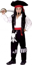 - Kompletný vzhľad piráta: košeľa s vestou, nohavice s opaskom a návlekmi, klobúk s páskou